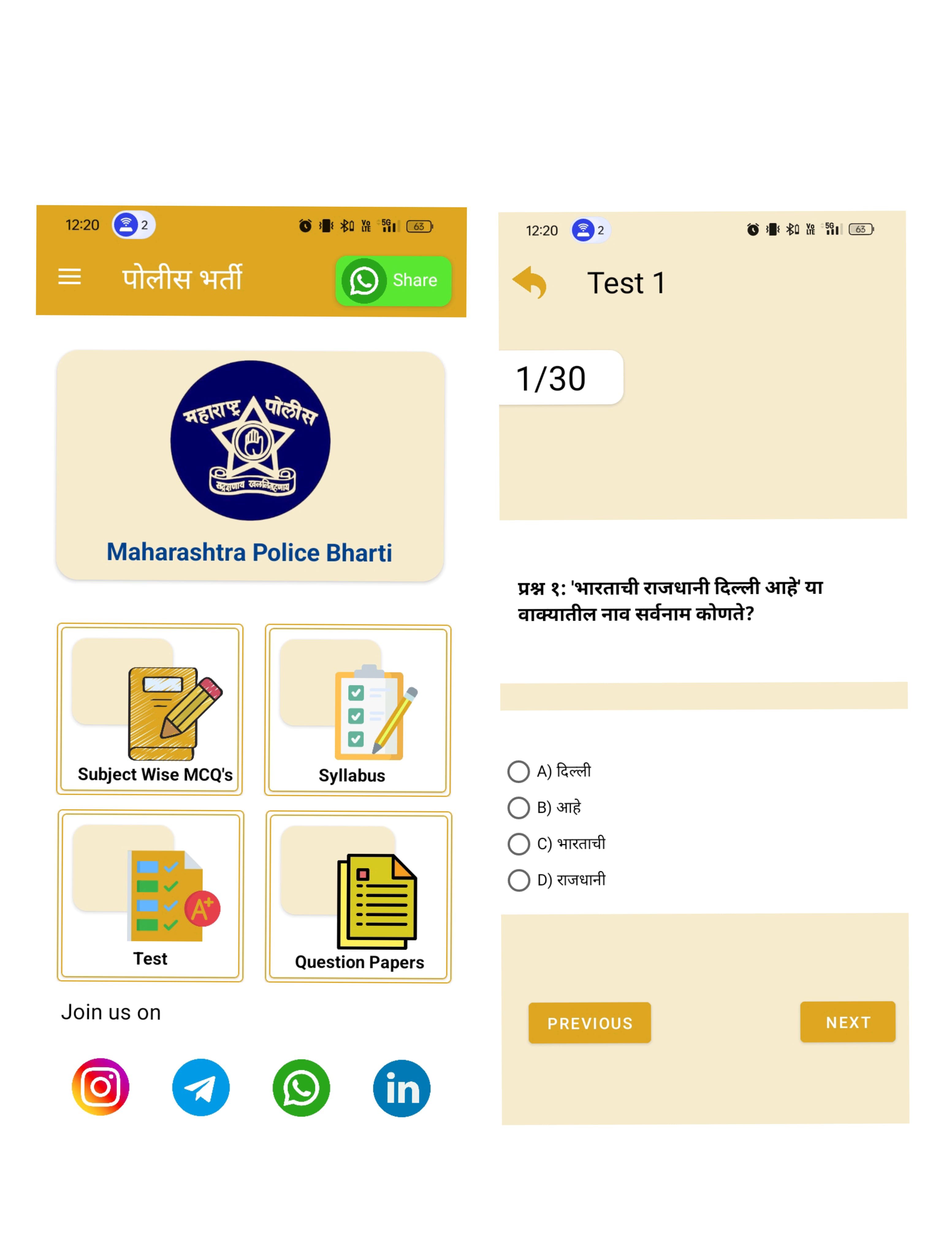 "The Police Bharti app helps Maharashtra Police recruitment aspirants with study materials, practice questions, previous year papers, and syllabus details, ensuring a streamlined preparation for the exams."